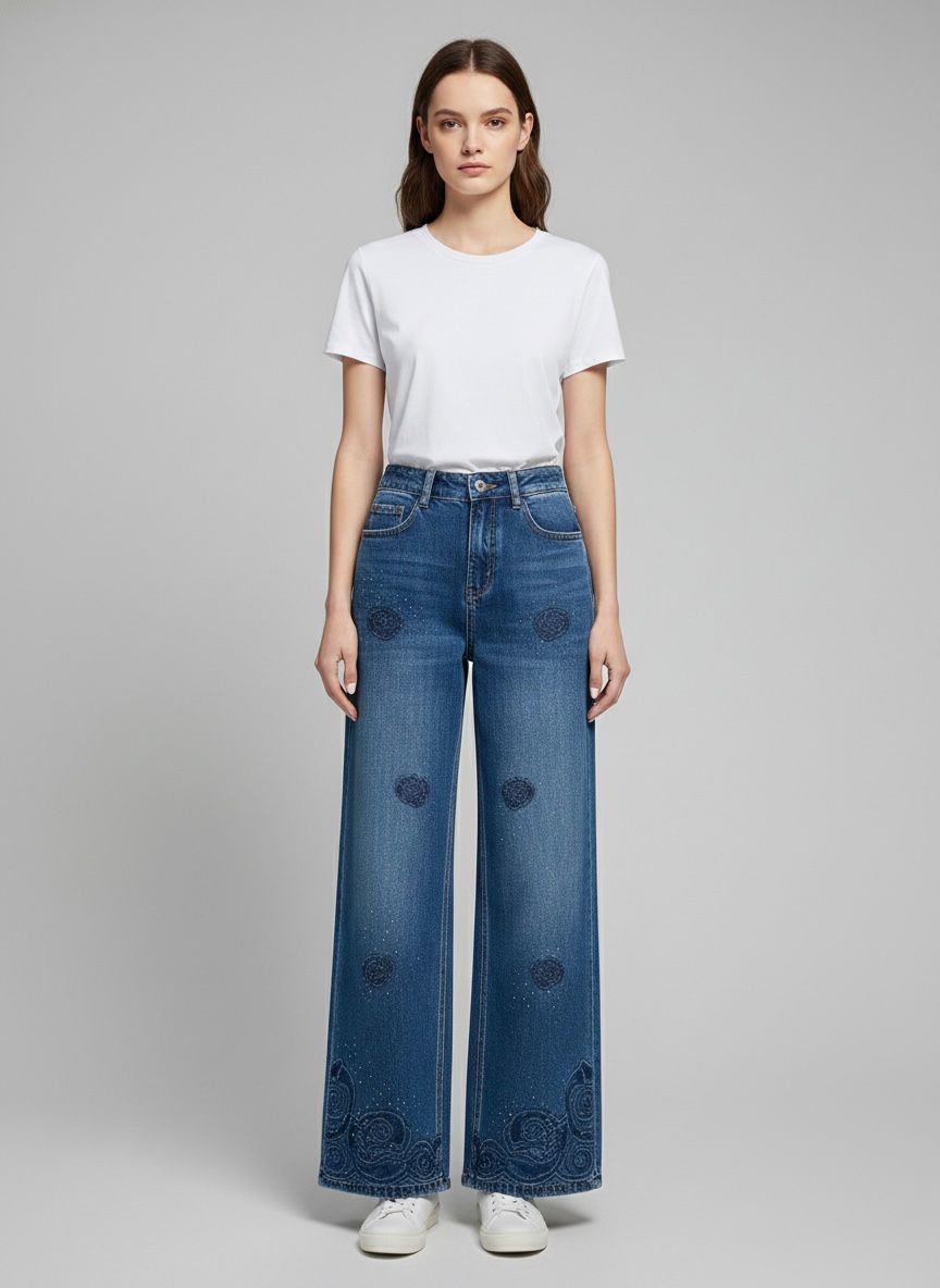 Jean con Flores Brillantes