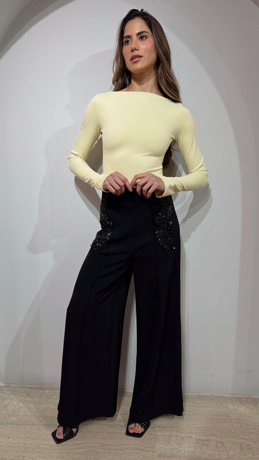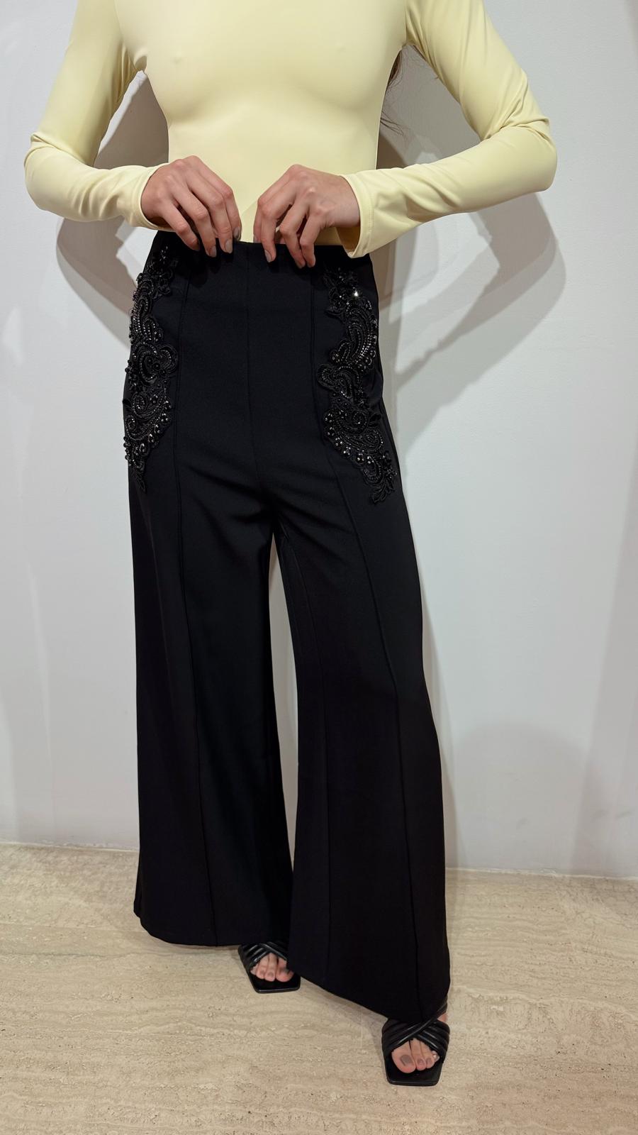 Pantalón Ancho Negro con Piedras